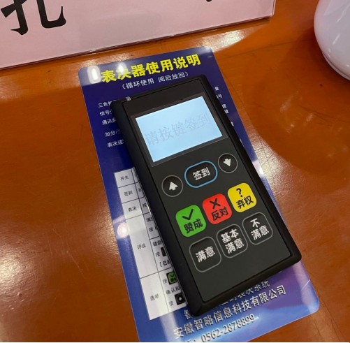 2、電子表決:會議電子表決系統(tǒng)的表決器,具有贊成”、“反對”、“棄權(quán)按鍵鮮明,操作簡易,待機持久,會前反復(fù)測試,會中現(xiàn)場支持特別適合于市、縣(區(qū)人民代表大會涉及表決事項時使用,數(shù)據(jù)準(zhǔn)確,能和大會主持詞、顯示屏同步協(xié)調(diào)使用,頗受人代會的歡迎和好評。